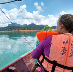 We stopped for lunch at a floating resort on the lake. The food was plentiful, it had a clean restroom, and an area to swim. The rooms at this particular resort were very small with a thin mattress and small space for a suitcase. I can imagine if you desire off the beaten path adventure and camping, you’d love the experience to stay there! I’d venture to guess there are a variety of floating resorts to choose from, possibly some with larger rooms and even one with air conditioning if that’s your idea of a vacation. After swimming for a bit the afternoon rain clouds were beginning to form so we made our way back to the Ratchaprapha Dam to disembark the longtail boat and head back to the hotel.